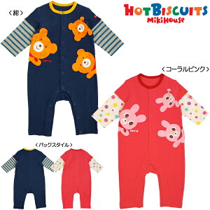 ミキハウス ホットビスケッツ mikihouse 重ね着風 接結天竺カバーオール(70cm・80cm)